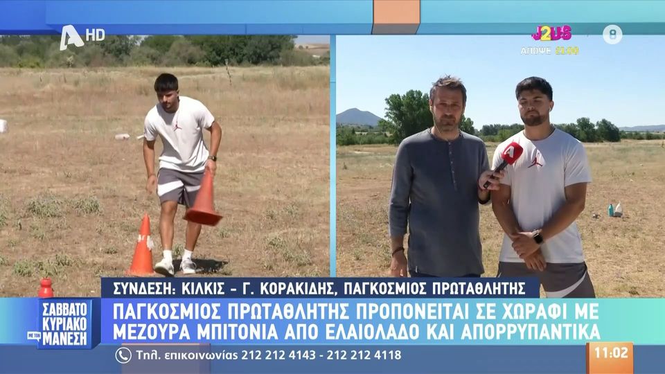 Ο παγκόσμιος πρωταθλητής, Γ. Κορακίδης, μιλάει από το Κιλκίς στο «Σαββατοκύριακο με τον Μάνεση» για τις άθλιες συνθήκες προπόνησής του, σε ένα χωράφι χρησιμοποιώντας μέχρι μπιτόνια από ελαιόλαδο και απορρυπαντικά για την προπόνησή του.