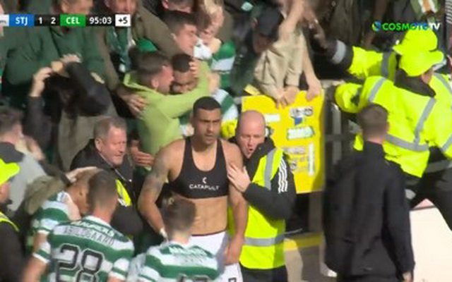 ΄Ο Έλληνας φορ έγραψε το 2-1 για την Σέλτικ στην έδρα της Σεντ Τζόνστον και έγινε ένα κουβάρι με τους οπαδούς της ομάδας του.