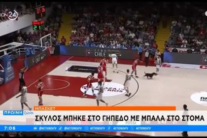 Παρά τις προσπάθειες του προσωπικού ασφαλείας να τον εμποδίσει, ο σκύλο βρήκε τον τρόπο να μπει στον αγωνιστικό χώρο
