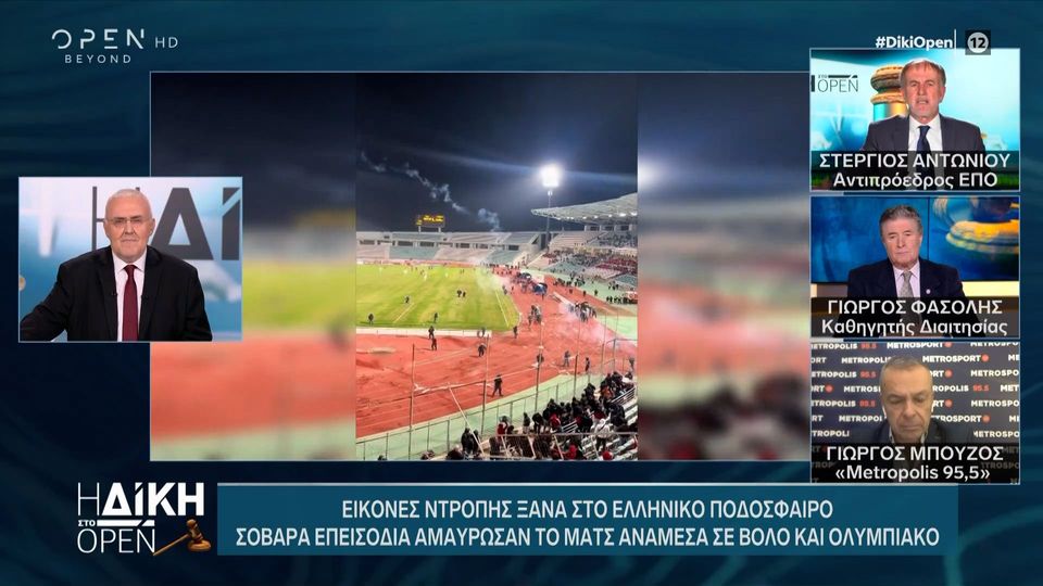 Εικόνες ντροπής για άλλη μια φορά στο ελληνικό ποδόσφαιρο. Σοβαρά επεισόδια αμαύρωσαν το παιχνίδι ανάμεσα στο Βόλο και τον Ολυμπιακό. Για τις τραγικές αυτές στιγμές μίλησε ο αντιπρόεδρός της ΕΠΟ Στέργιος Αντωνίου, ο οποίος χαρακτηριστικά είπε «χθες στο Βόλο έγινε διακωμώδηση του αθλήματος».
