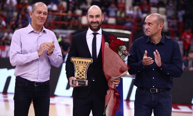 Ο Βασίλης Σπανούλης επέστρεψε στο ΣΕΦ, ως προπονητής του Περιστερίου, με τον κόσμο του Ολυμπιακού να τον αποθεώνει και τους Παναγιώτη και Γιώργο Αγγελόπουλο να τον βραβεύουν για την προσφορά του στον σύλλογο.