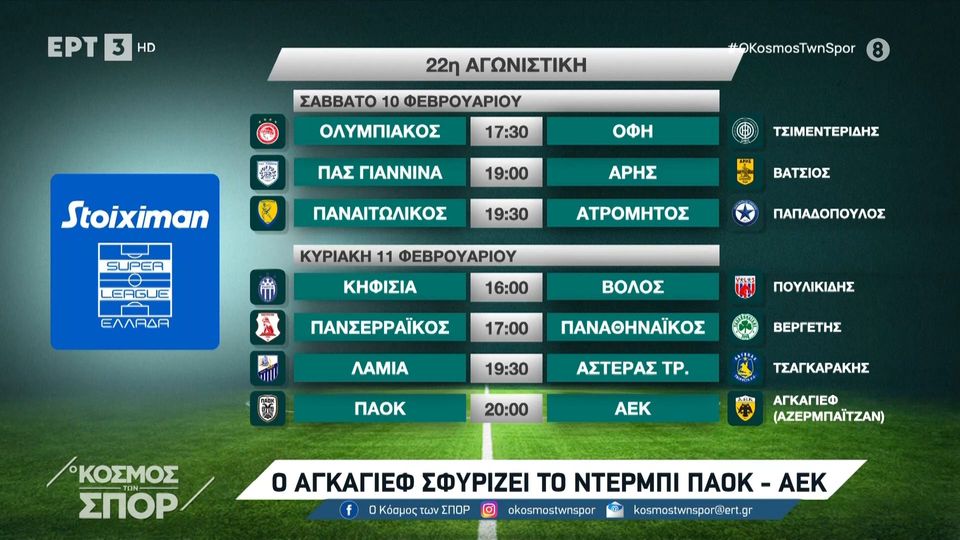 ΠΟΔΟΣΦΑΙΡΟ Ορίστηκαν οι διαιτητές της 22ης αγωνιστικής Last updated: 08/02/2024 23:50 Sportube Team Share SHARE Ο Αγκάγιεφ σφυρίζει το ντέρμπι ΠΑΟΚ-ΑΕΚ Market Pass: Παράθυρο για παράταση του μέτρου, πότε η επόμενη πληρωμή Σπόρτινγκ: Οι οπαδοί ζητούν να παραχωρηθεί δανεικός ο Αλεξανδρόπουλος Ολυμπιακός – Ρεάλ Μαδρίτης: Σχορτσανίτης, Παπαλουκάς και Μπατίστ στον τελικό τη Euroleague Στα ημιτελικά του Rome Masters ο Τσιτσιπάς Αθλητικές μεταδόσεις με Παναθηναϊκός – Περιστέρι (30/05) TAGGED:top2 Share This Article Facebook Whatsapp Whatsapp Email Copy Link