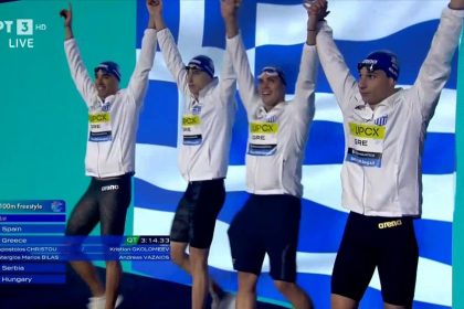 Η εξαιρετική προσπάθεια των αθλητών μας στον τελικο των 4x100μ. ελεύθερο.
