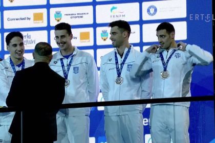 Με νέο πανελλήνιο ρεκόρ (1.23.27) οι Γκολομέεβ, Μπίλας, Χρήστου και Βαζαίος, ανέβηκαν…