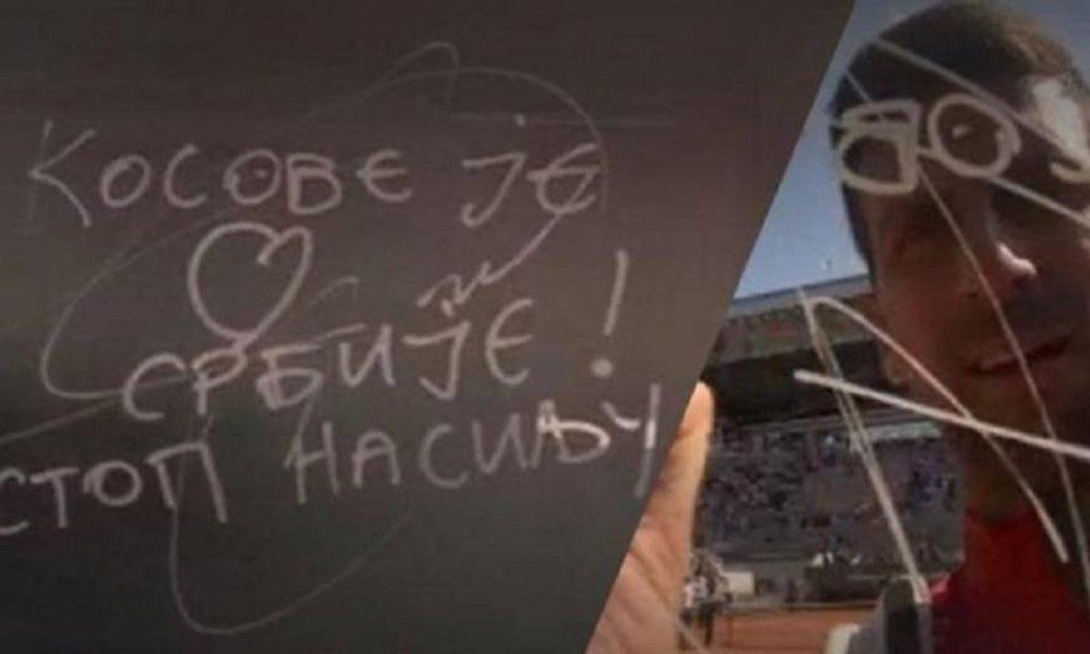 Ο Τζόκοβιτς στο τέλος της αναμέτρησης έγραψε στην κάμερα: «Το Κόσοβο είναι η καρδιά της Σερβίας. Σταματήστε τις βιαιοπραγίες», ενώ στις δηλώσεις του τοποθετήθηκε για όσα συμβαίνουν στο Κόσοβο τις τελευταίες ώρες.